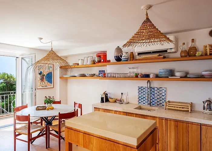 Η Villa Cisterna Capri, Private Beach Front Property With Pool με 3 υπνοδωμάτια απέχει λιγότερα από 20 λεπτά με τα πόδια από Κήποι του Αυγούστου. Αυτή η βίλα διαθέτει τηλεόραση επίπεδης οθόνης με δορυφορικά κανάλια και ρύθμιση κλιματισμού και πλήρως εξοπλισμένη κουζίνα με ψυγείο και σκεύη κουζίνας.